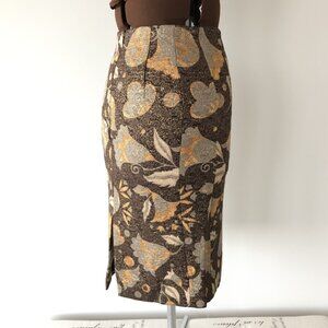 Moschino Shimmery Brown/Tan/Gold Floral Knee Length Pencil Skirt