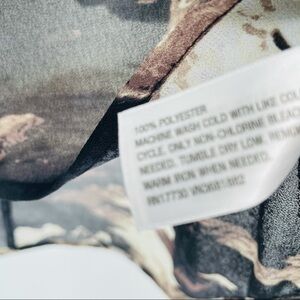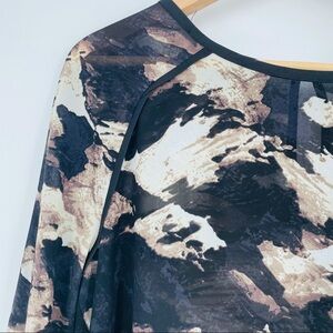 Mossimo Long sleeve brown black and white abstract design tunic shirt. Features rounded neckline with One button in the back. Casual and comfortable! Looks great with leggings or skinny jeans.