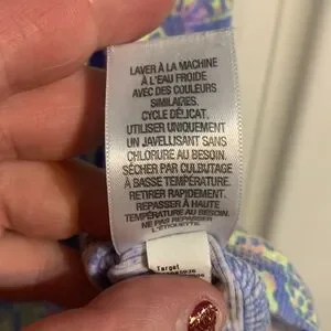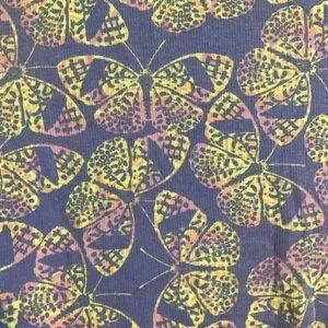 Top is stretchy and lightweight. Top is blue with pink and yellow butterflies.