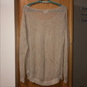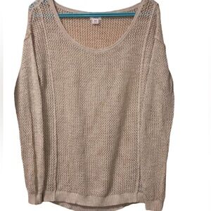 Size medium. Very versatile, it looks cute with a black lace bra underneath, bralette or even as a bikini coverup. Tank top, long sleeve shirt. In good condition, No pulls in fabric