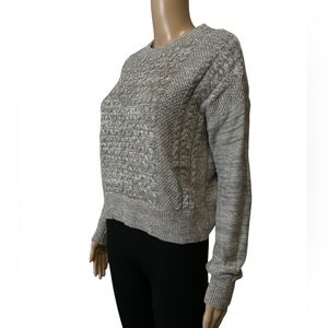 Cozy grey cable knit sweater. Medium. Long sleeves. Crew neck. 100% recycled materials.