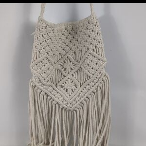 Mossimo Ivory Boho Macrame with Fringe Crossbody Purse
