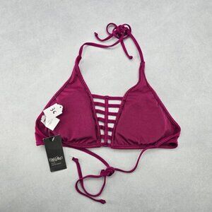 Mossimo Purple Padded Cutout Halter Tie Plunge Bikini Bralette Swim Top S Small