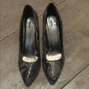 Step out in style with these Michele snake print heels. Perfect for any occasion, these black shoes add a touch of elegance to your outfit.