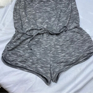 Salt and pepper gray colored size small pre own mossimo strapless shirt shorts tie up waist romper Preowned good condition
