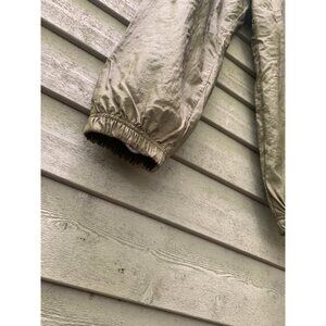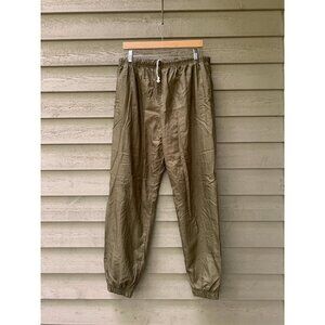 Nylon exterior and really soft cotton lining (which is what sold me on these! And the colour is such a earth green!)