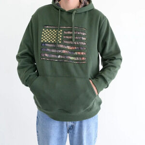 Mossy Oak Green And Brown Camo Patriotic Flag Hooded Pullover Sweater Large