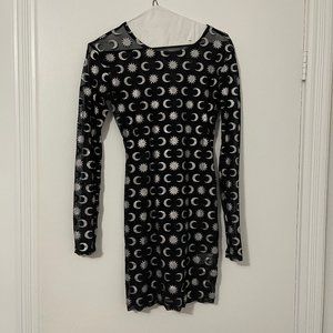 Motel Bodycon Dress with Moon/Sun in Silver Glitter on Black