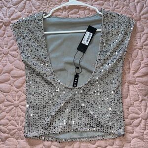 Motel Rocks Erika Backless Top in Silver Sequin (Size Medium)