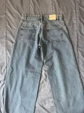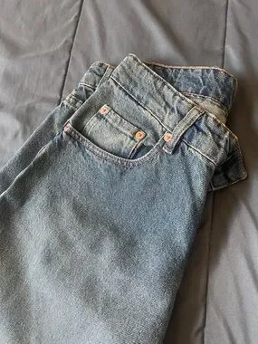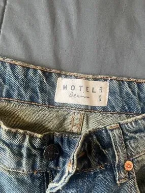 Straight leg women's jeans from Motel Rocks. Light blue denim with classic five-pocket styling. Subtle faded wash for a casual look. Mid-rise waist and relaxed fit through the leg. Easy to pair with tees or blouses.