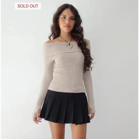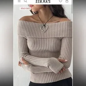 Motel Rocks Off-Shoulder Ribbed Sweater