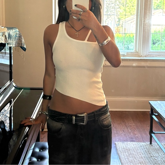 MOTEL ROCKS- White Ribbed Asymmetrical Tank Top
