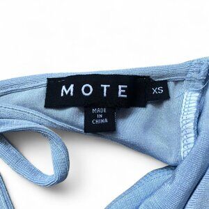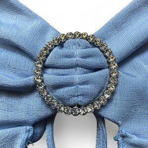 •adorable itty bitty MOTEL SHIMA crepe baby blue Y2K inspired angel fairy butterfly lettuce hem tie-up rhinestone festival clubbing top 🩵🦋🪽