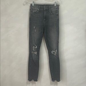 Mother High Waist Looker Ankle Chew Jean in Scene Of The Crime Washed Grey sz 25