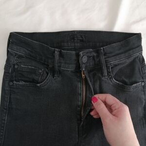 Mother Insider Crop Step Fray Hem Jeans in Not Guilty Black