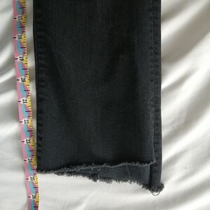"Plead the fifth. This iconic high-waisted bootcut hits at the ankle with a frayed step-hem. Made from stretch denim, Not Guilty is our bestselling black wash. Model is 5' 10" and wears size 26 or small bottoms."