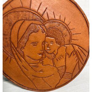 Mother Mary & Baby Jesus Embossed Leather Wall Hanging 6"