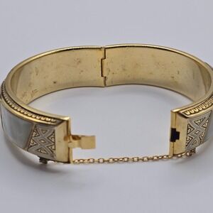 Lot of 2 Bracelets Mother of Pearl Inlays Gold Tone Jewelry