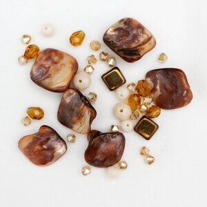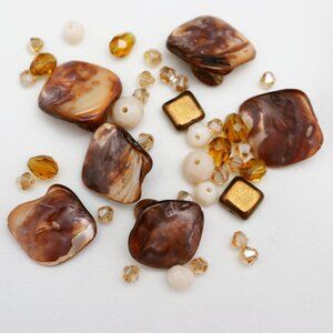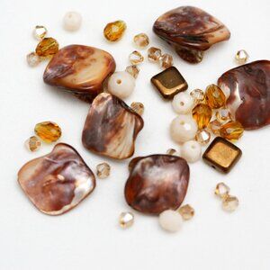Shades of Brown & Cream - Mother of Pearl Shell & Crystal Bead Lot - Great for jewelry making & crafts
