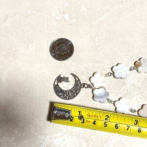 Mother of Pearl Flower Beaded Short Necklace + Cat on the Moon Pendant