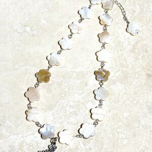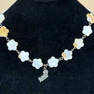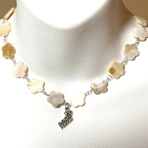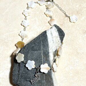 Mother of Pearl Flower Beaded Short Necklace + Dog Person Paw Print Pendant
