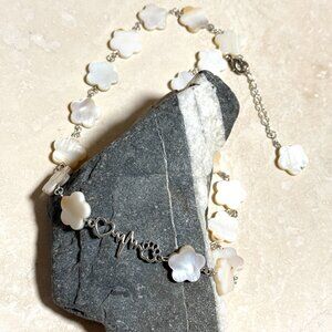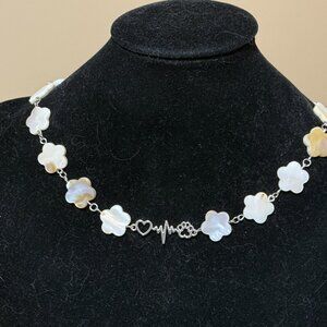 Mother of Pearl Flower Beaded Short Necklace + Paw Print Heart Beat Pendant
