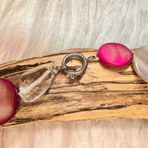 Hot pink/purple dyed mother of pearl coin and crystal choker necklace.
