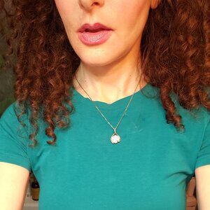 This is a sweet necklace suitable for everyday. It could also be a nice gift for an older child or teenager. Chain is 17.5 inches. Never worn.