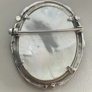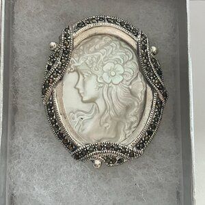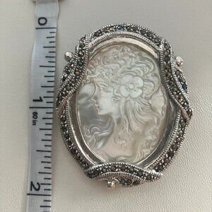 Mother of pearls & Marcasite Cameo brooch 925 Sterling Silver
