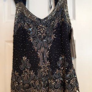 Beautifully beaded long JKara navy dress with beaded bodice. Size 8, new with tags. Bought for 2021 wedding but venue changed due to covid and it's too formal for the new venue. Never worn. Pet-free, smoke-free house.