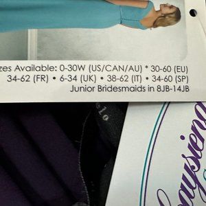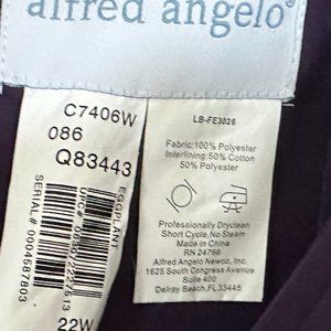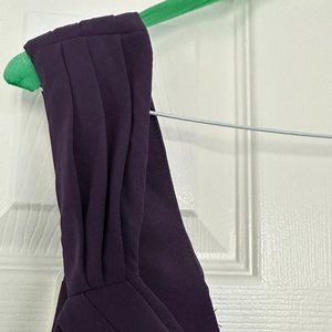 Alfred Angelo.Floor length deep purple. Never worn. Cross pleats at bust, beautiful flow. Back is gorgeous with pleats and pearl size buttons. Small satin tie at waist.