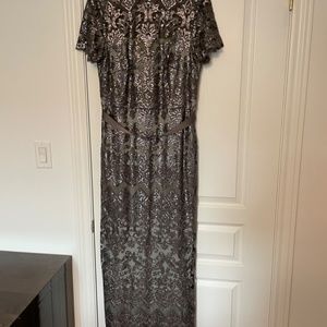 This absolutely stunning dress from Tadashi Shoji, bought in Las Vegas, paid 700$US, the dress was worn once, dry cleaned,my hight 5.6 ( 172 ), my size 12-14 , dress true to size