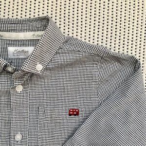 Checked button down shirt in 100% cotton with a double decker bus embroidered detail. Purchased from Mothercare in the UK.