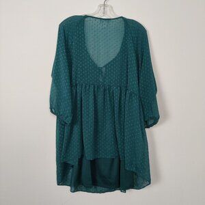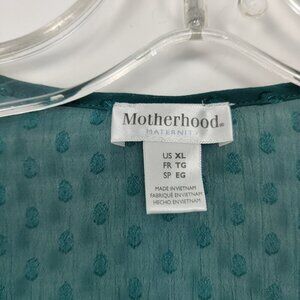 Motherhood Maternity Women's Swiss Polka Dot Tunic Top in Green Size XL Sheer Mini Dress Nursing Pregnancy