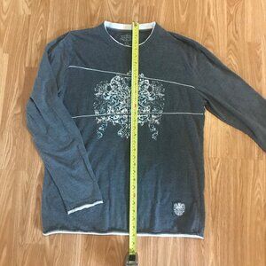 Moto Mens XL Grey Graphic Long Sleeve Crew Neck T Shirt White Trim