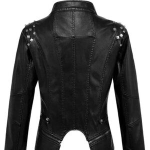 Moto Studded Lapel Front Zip Vegan Leather Biker Jacket