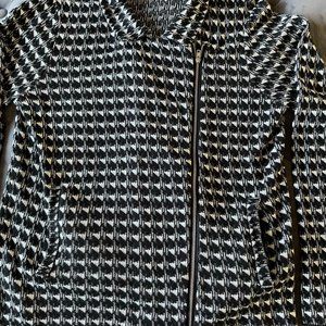 Houndstooth print. Pockets.