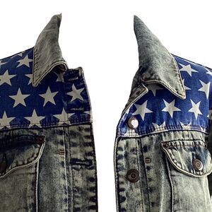 Moto Topshop size 14 Jean jacket USA flag. 0592