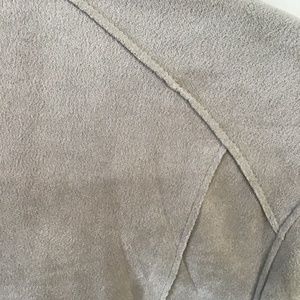 Very soft moto jacket it is beige sand colour true to colour in pictures. Suede like feel. Was bought at Nordstrom. It is Blank NYC. 90% polyester 10% spandex. Machine wash cold tumble dry low.