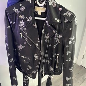 Black with silver roses moto jacket. Excellent condition.