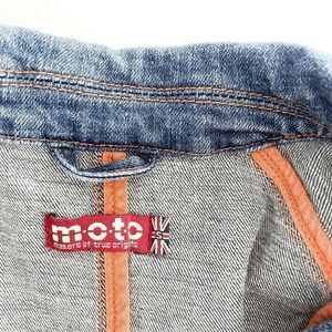 Moto Womens Denim Blazer Jacket Long Sleeve Button Front Blue Wash Small