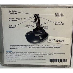 Motocross Madness 2 offers an engaging PC gaming experience with thrilling off-road motorbike adventures. Compatible with Microsoft SideWinder Precision Pro Joystick for enhanced gameplay.