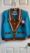 Motoguo Mr.Rogers Lake Blue & Brown Button Up Knit Sweater Oversized S/M