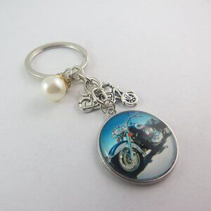 Motorcycle Keychain with Bike Charm Biker Key Ring Pearl Accent Rider Gifts