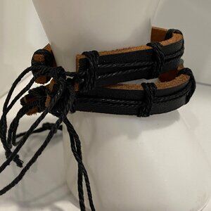 Motorcycle genuine Leather Bracelets set of 2 With Adjustable Cord bikercore