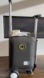 Sleek black motorized suitcase with wheels. Features a unique design for easy travel. It is approved for carry-on luggage.