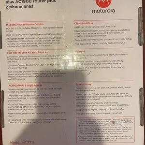 Overview. Motorola MT7711 DOCSIS 3.0 Dual-Band AC1900 Cable Modem/WiFi Router Combo; 24 x 8 Bonded Channels; 1.9 Gbps Max Speed; 4 Ethernet Ports; for Comcast XFINITY Internet and Voice 4.2 out of 5 stars, average rating value.