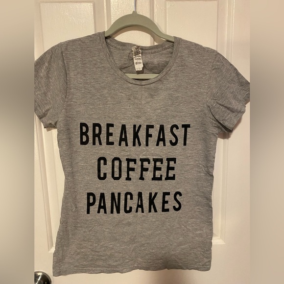 Good condition. Coffee, pancakes, breakfast - what more can I say? Fits small.