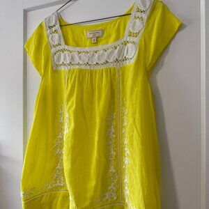 Moulinette Soeurs (Anthropologie) lemon yellow embroidered peasant top / sz 10