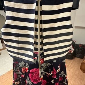 In the pictures I have listed the size as well as the type of fabric. There is not a lot of stretch in this dress if any. Says size 10. Bought from Anthropologie and have loved this piece for a long time.